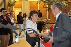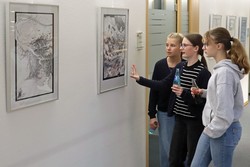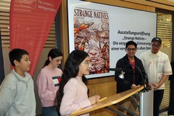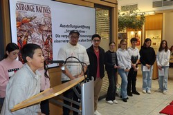 Fragen stellten bei der Ausstellungseröffnung Schülerinnen und Schüler, die in vorhergehenden Graphic-Novel-Workshops für die Berleburger Realschule und das Johannes-Althusius-Gymnasium mit den beiden Künstlern von den Philippinen zusammengearbeitet hatten. So erfuhr man von der künstlerischen Arbeit und den professionellen Grundüberzeugungen der Zwei. Hörte man ihnen penibel zu und schaute genauer auf den tiefsinnigen Inhalt des kongenial illustrierten Werks, dann wurde klar, wie wenig eine Graphic Novel mit dem zu tun hat, was in Deutschland mit dem Wort „Comic“ manchmal etwas abschätzig bezeichnet wird. Im Englischen benutzten Paolo Herras und Jerico Marte diese Vokabel jedoch mit großer Selbstverständlichkeit und Selbstbewusstsein. Außerdem konnten die Zuhörenden etwas mehr über die anderen Berufe der Beiden erfahren: Paolo Herras ist nämlich in Manila auch noch Verleger für Graphic Novels - und damit geschäftlich ein Streiter für dieses Genre, Jerico Marte arbeitet indes auf dem Bauernhof seiner Eltern, neben der Hühner-Haltung geht es dort um die Ernte von Kokosnüssen und Kochbananen.