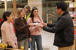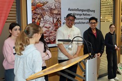 Fragen stellten bei der Ausstellungseröffnung Schülerinnen und Schüler, die in vorhergehenden Graphic-Novel-Workshops für die Berleburger Realschule und das Johannes-Althusius-Gymnasium mit den beiden Künstlern von den Philippinen zusammengearbeitet hatten. So erfuhr man von der künstlerischen Arbeit und den professionellen Grundüberzeugungen der Zwei. Hörte man ihnen penibel zu und schaute genauer auf den tiefsinnigen Inhalt des kongenial illustrierten Werks, dann wurde klar, wie wenig eine Graphic Novel mit dem zu tun hat, was in Deutschland mit dem Wort „Comic“ manchmal etwas abschätzig bezeichnet wird. Im Englischen benutzten Paolo Herras und Jerico Marte diese Vokabel jedoch mit großer Selbstverständlichkeit und Selbstbewusstsein. Außerdem konnten die Zuhörenden etwas mehr über die anderen Berufe der Beiden erfahren: Paolo Herras ist nämlich in Manila auch noch Verleger für Graphic Novels - und damit geschäftlich ein Streiter für dieses Genre, Jerico Marte arbeitet indes auf dem Bauernhof seiner Eltern, neben der Hühner-Haltung geht es dort um die Ernte von Kokosnüssen und Kochbananen.
