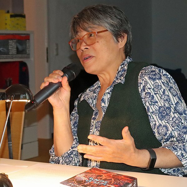 Candy Gourlay hat ihr eigenes Happy End nicht auf den Philippinen gefunden. Mit sieben Jahren habe sie ihr erstes Buch gelesen und sofort gewusst, dass sie Jugendbuch-Schriftstellerin werden wollte. Dafür habe es keine Möglichkeit in ihrer Heimat gegeben. Stattdessen wurde sie Journalistin, lernte auf den Philippinen ihren Mann Mitte der 1980er Jahre während der Revolution gegen die Marcos-Diktatur kennen, ging mit ihm nach England und wurde Kinder- und Jugendbuch-Autorin. 2005 war sie erstaunt, als sie ein Schwarzweiß-Foto sah, das einen Filipino im Lendenschurz und eine sehr hochgeschlossene Frau zeigt, die Hand in Hand miteinander tanzen. Von der Frau ein unverzeihlicher Verstoß gegen die Etikette. Nach und nach habe sie immer mehr über Bild und Weltausstellung 1904 herausgefunden. „Wild Song“ führt die Geschichte von Luki und Samkad weiter, die in dem Roman „Bone Talk“ beginnt. Ob sie die Reihe weiter fortsetze? Nein, es sei langwierig und kräftezehrend gewesen, die beiden Bücher zu schreiben, bei einem dritten wäre sie über 70, wenn sie es fertig hätte. Sie zeichne jetzt lieber Comics, da schließt sich ein Kreis: Die kleine Wild-Song-Waise Sidong, die in Amerika auch noch ihre ältere Schwester verliert, zeichnet schon zuhause und auf der Reise nach Amerika mit Holzkohlestücken. In St. Louis bekommt sie Buntstifte geschenkt. Am Ende des Romans hat sie eine Galerie von Zeichnungen. Als Ermutigung für eine gute Zukunft. Damit ist sie die zweite, noch jüngere Heldin des Buchs - aber die Kleinen übersieht man ja leicht.