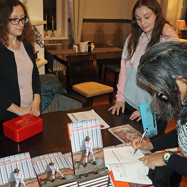 Bad Berleburg. „Verdammt, ich habe das Weihwasser vergessen“ - das sagt eine Frau, als sie mit einer Freundin deren Nichte den Teufel austreiben will. Die Nichte ist ein Baby, etwas älter als neun Monate, als Filipina im katholischen Saint Vincent‘s Catholic Medical Center Manhattan geboren, es hat einen sehr großen Kopf, kann schon fließend sprechen, heißt Guadalupe und ist Titelheldin des Romans „Ein ziemlich böses Mädchen“, das Jessica Zafra jetzt mit aufs Berleburger Literaturpflaster gebracht hatte. Dicht an dicht saßen die 40 Zuhörenden im örtlichen Hotel „Alte Schule“. Hier gestand die Schöpferin des ziemlich bösen Mädchens zunächst ein, dass sie selbst - geboren 1965 - sehr lang ein ziemlich angepasst-pragmatisches Mädchen war. Es sei immer ihr Traum gewesen, einen echten Roman zu schreiben. Aber sie habe lediglich Artikel und kleinere Geschichten verfasst, als Herausgeberin, Verlegerin und Filmproduzentin, als Radio- und Fernseh-Moderatorin gearbeitet, weil sie Miete bezahlen und Katzen ernähren musste. Bei einem runden Geburtstag vor zehn Jahren sei ihr schlagartig klar geworden, dass sie alt werde - deshalb habe sie ihr Leben geändert. Und das Ergebnis: ihr Debüt-Roman über die ziemlich böse Guada, die in Wirklichkeit nur messerscharf klug hinter die Kulissen einer scheinheilig-verlogenen, unanständig-reichen Gesellschaft schaut.